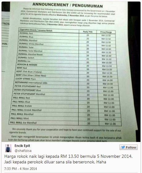 Harga Rokok 2017 Malaysia : Harga Rokok Naik Rm21 50
